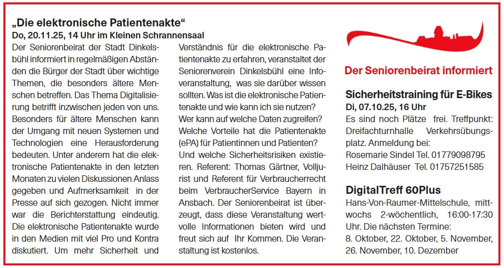 - 20. November: Vortrag "Elektronische Patientenakte", Kleiner Schrannensaal (s. unten)