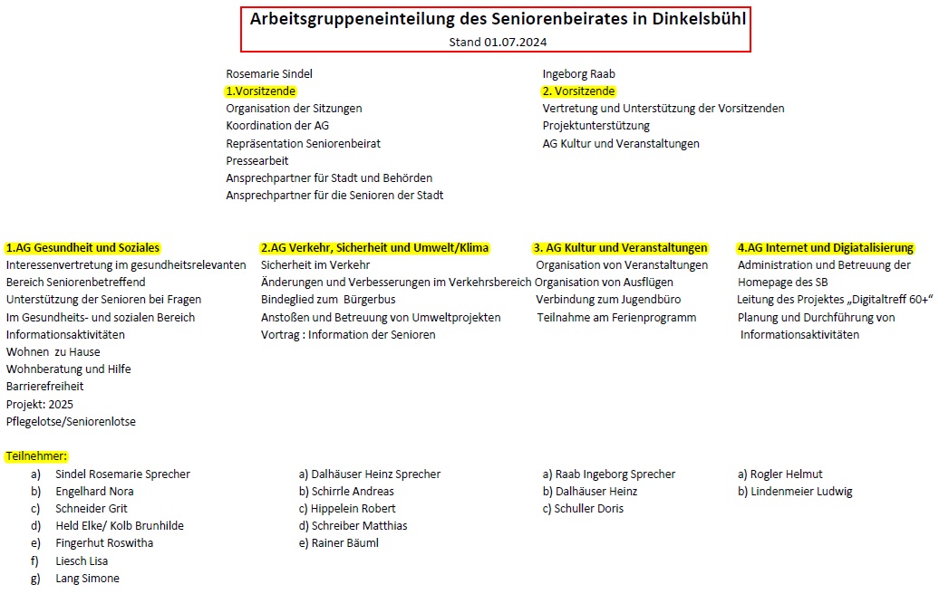 Am 9. Juli 2024 wurde der Seniorenbeirat für die nächsten drei Jahre teilweise neu besetzt und hat sich auch eine neue Organisationsstruktur gegeben.